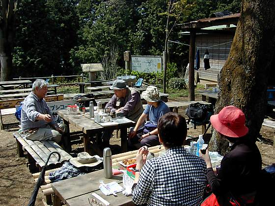 城山で尾崎さん一行に出会う。隣で昼食。 |