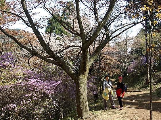 ○今回は奥高尾の桜を見に出かけた。桜の名所である一丁平は丁度満開。昨年に比べて1週間早い。今年の奥高尾は、は異常気候のためか、葉の発育が強いため全体に葉の出が目立ち、例年のピンク一色の景観と比べて少し地味模様。 ○桜の他、桃、木蓮、山吹、各種のスミレ、イカリソウ、シャクヤク、ヤマツツジと山は花だらけ。気温が高い日が続いたので、山は春と初夏の花が一度に咲いて正に百花瞭乱の景色が楽しめた。 ○悪いニュースをきいた。小仏峠の茶店が2軒とも閉店していたので、たまたま城山で出会った山中間の尾崎留吉さんに訳を聞いた所、手前の佐藤小屋はおばさんの肺が悪い病気に冒されて片方摘出し、当分お休みで再開のめどが立たないとのこと。また、奥の青木茶屋は主人が心臓病で3月に急逝したため閉店したとのこと。 この狭い小仏峠は旧甲州街道の要所で、江戸時代には現在からは想像も出来ないくらいにぎわっていた(何軒もの旅籠が軒を連ねていた、佐藤小屋の佐藤さんの何代か前は江戸時代にここで「武蔵屋」という大きな旅館をやっていた由)というが、平成の時代についに茶店1軒もなくなるとは・・・ ○百花を堪能して、いつもの十一丁目茶屋が四月から待望の生ビールを始めたので初のみをして一号路で下山。 |