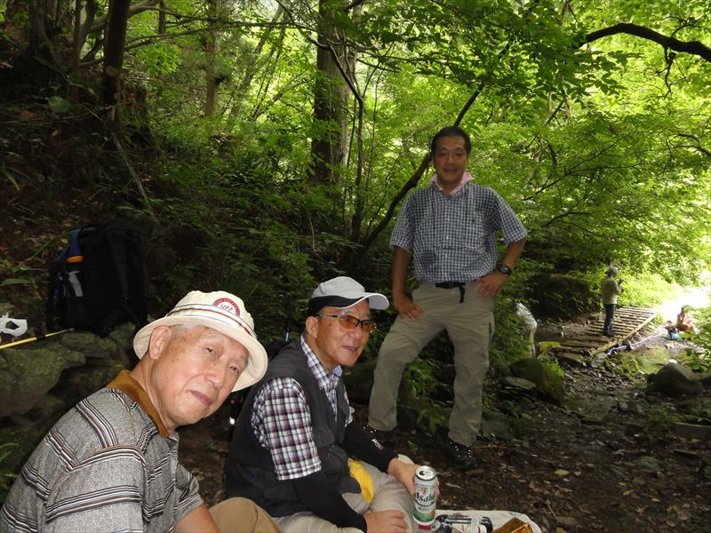 | コメント | ○今回は前回のHPをみて、是非行きたいとの希望があったので、再度、涼しい高尾の奥入瀬(木下沢)を逍遙した。夏休みとあってか、旧キャンプ広場では大きなグル−プがバ-ベキュウなどをして楽しんでいた。 ○前回同様、川縁に陣取って蝉しぐれと木下沢のせせらぎを聞きながらランチを楽しんだ。夏場の歩きは、このコ−スに限ります。 |