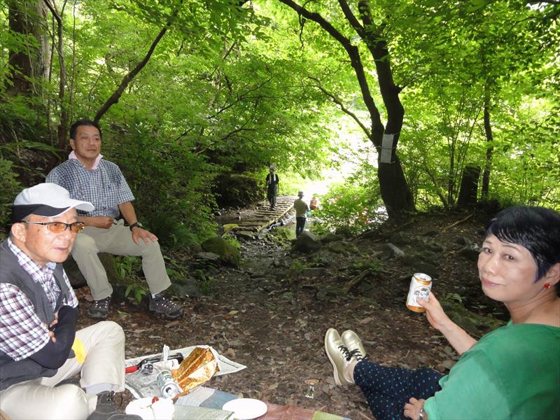 木下沢と影信沢との合流点近くで陣取って、ランチタイムをゆっくり過ごした。 |