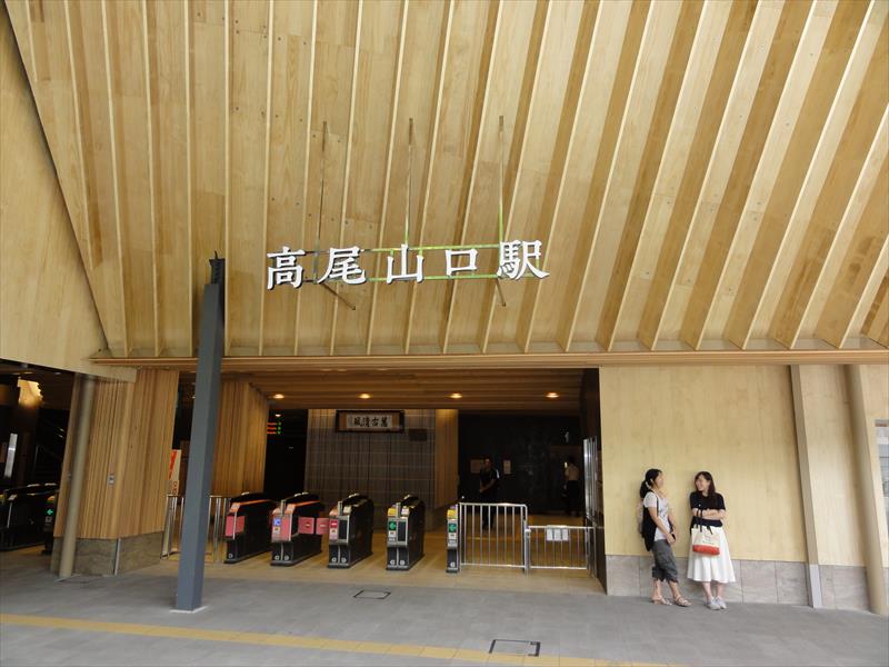 高尾山口駅外側玄関 横の工事中はたぶん裏の日帰り温泉施設に行く通路を作っているのかもしれない。 |